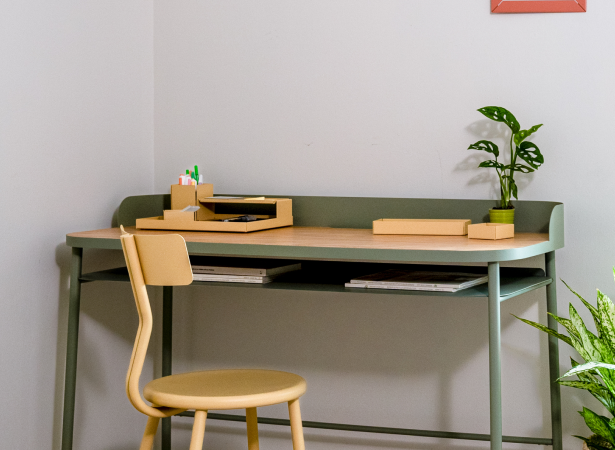 Linnea - Sistema a parete per Home Office (4 mensole e scrivania appesa) - Beige Luxor