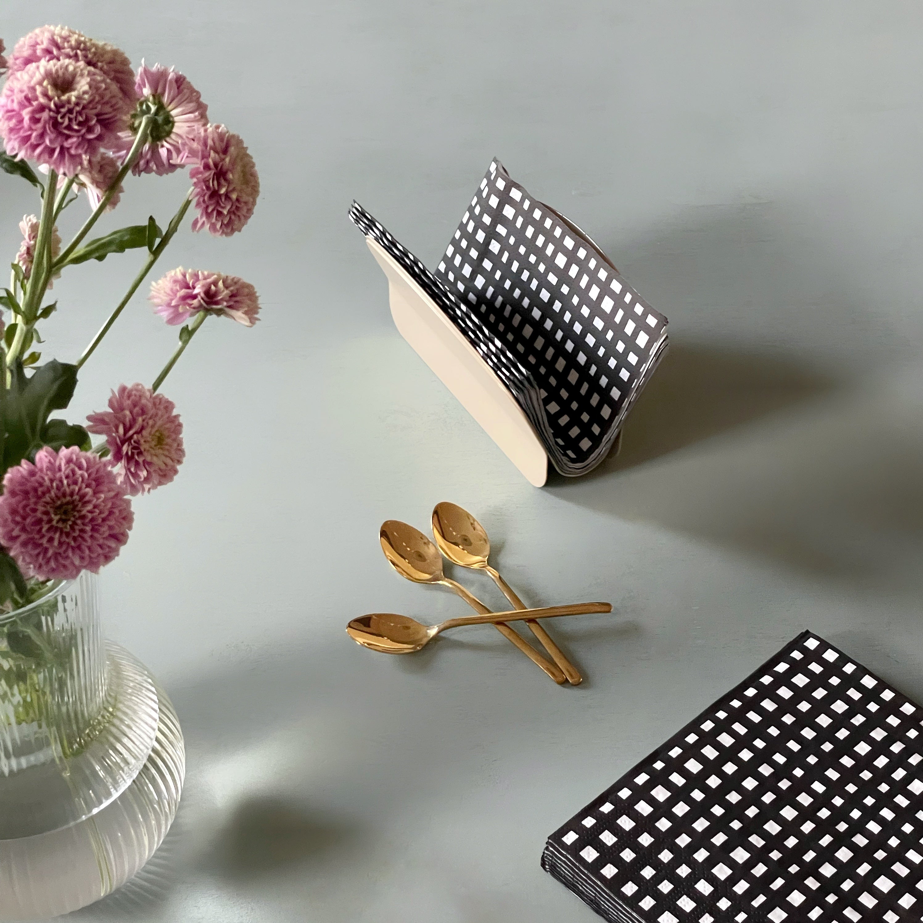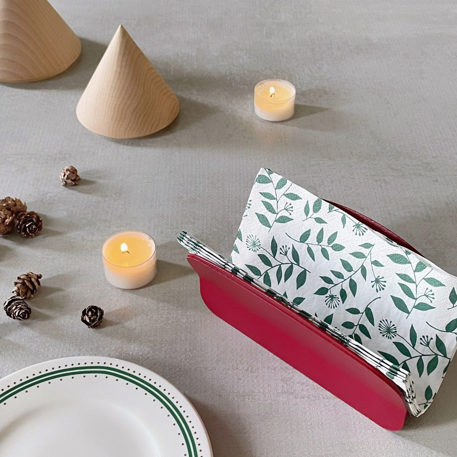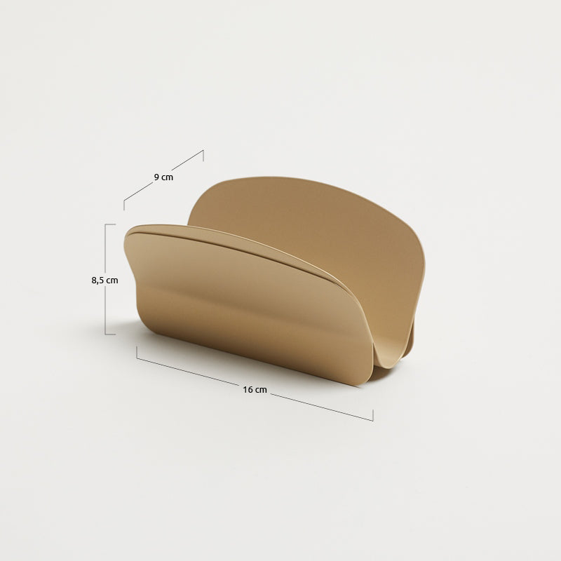 Metti in tavola il design in metallo di Hiro. Linee arrotondate e armonizzazione tra le due lamiere che sostengono e accolgono i tovaglioli. Un oggetto che non può mancare nella tua collezione.