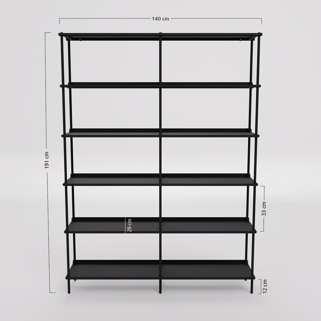 Organisieren Sie Ihre Räume. Nutzen Sie sie, füllen Sie sie, leeren Sie sie, präsentieren Sie sie. Machen Sie sie zu Ihren eigenen. Mit einem modernen und minimalistischen Regal, das für alle Zwecke geeignet ist. Ein robustes und elegantes Möbelstück, erhältlich in verschiedenen Größen. Die Rohrstruktur wechselt mit großen Regalen, die am Eingang und Ausgang sanft abgewinkelt sind – wie ein imaginärer Wasserfall, der sich durch Bücher und Dekorationen schlängelt.