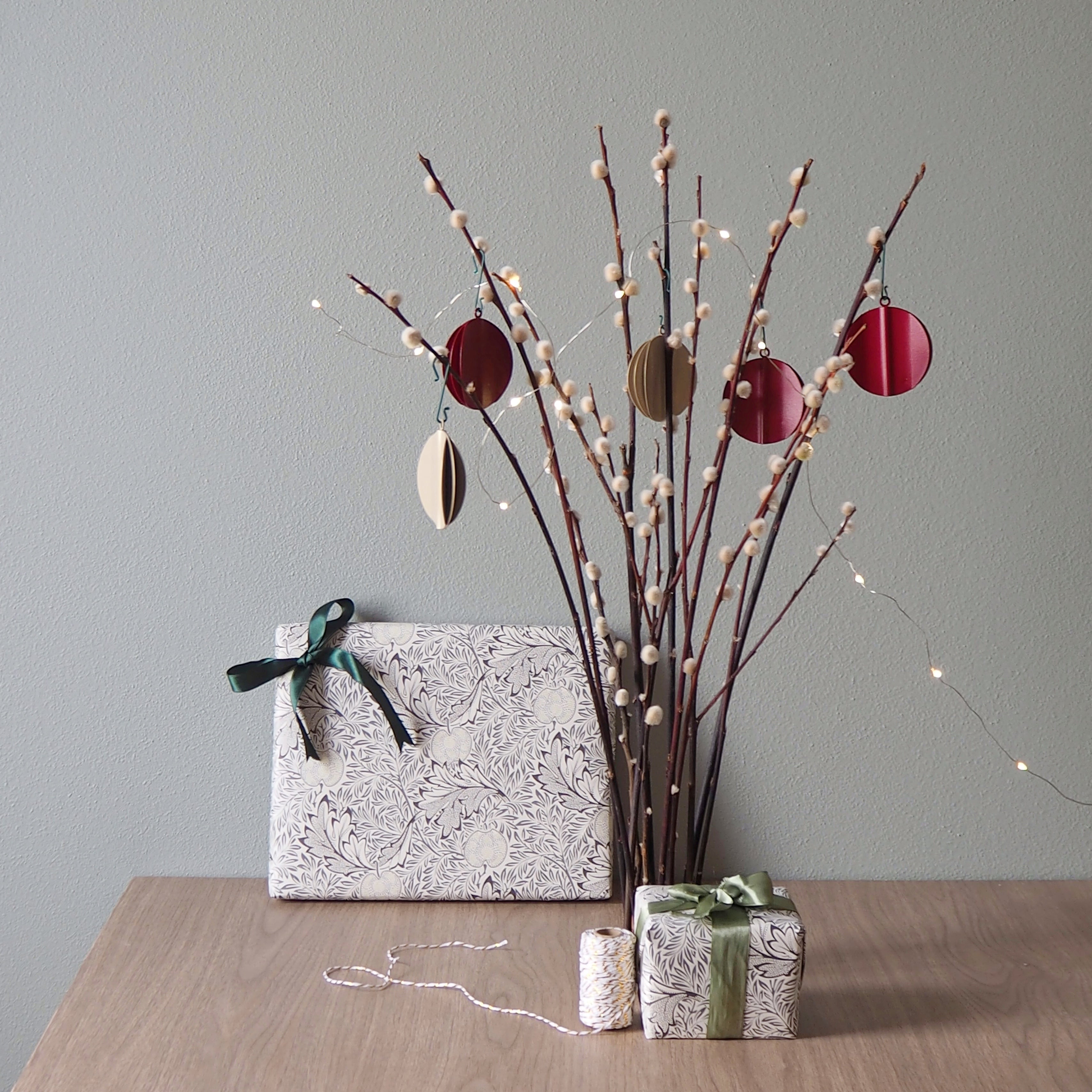 A set of Christmas tree decorations with a unique design, like metal snowflakes, to look at again and again to discover their shapes, from all sides.