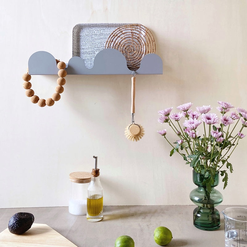 Dune is a coat hanger shelf, suitable for holding bags, hats and coats but also as a pocket emptier. Besides, it is a decorative item for your wall.