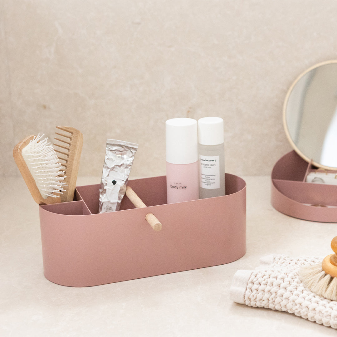 Maximum freedom and functionality thanks to the two small separators for organizing smaller objects (pencils, paper clips, drawing pins, rings, earrings, nail polish, make-up brushes) and a removable wooden handle, useful both for transport and for organizing rolls of tape, rubber bands or bracelets.