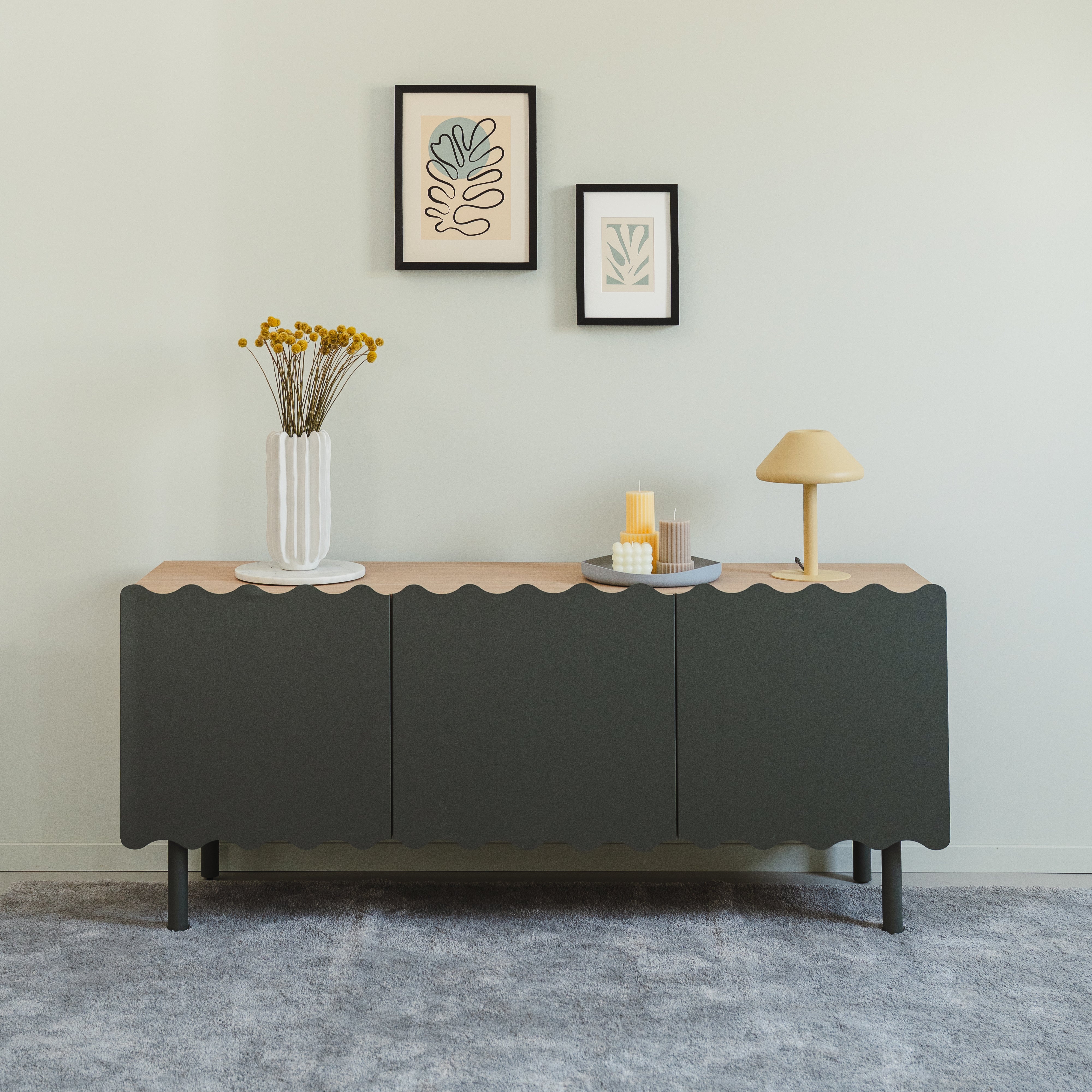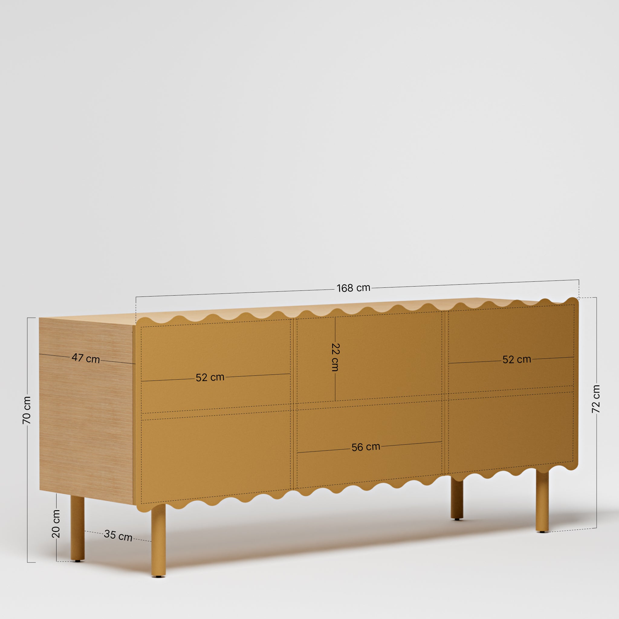 Lido is an elegant and playful sideboard that invites you to sweet melancholy, sailing on the colorful wavy profiles of its doors.