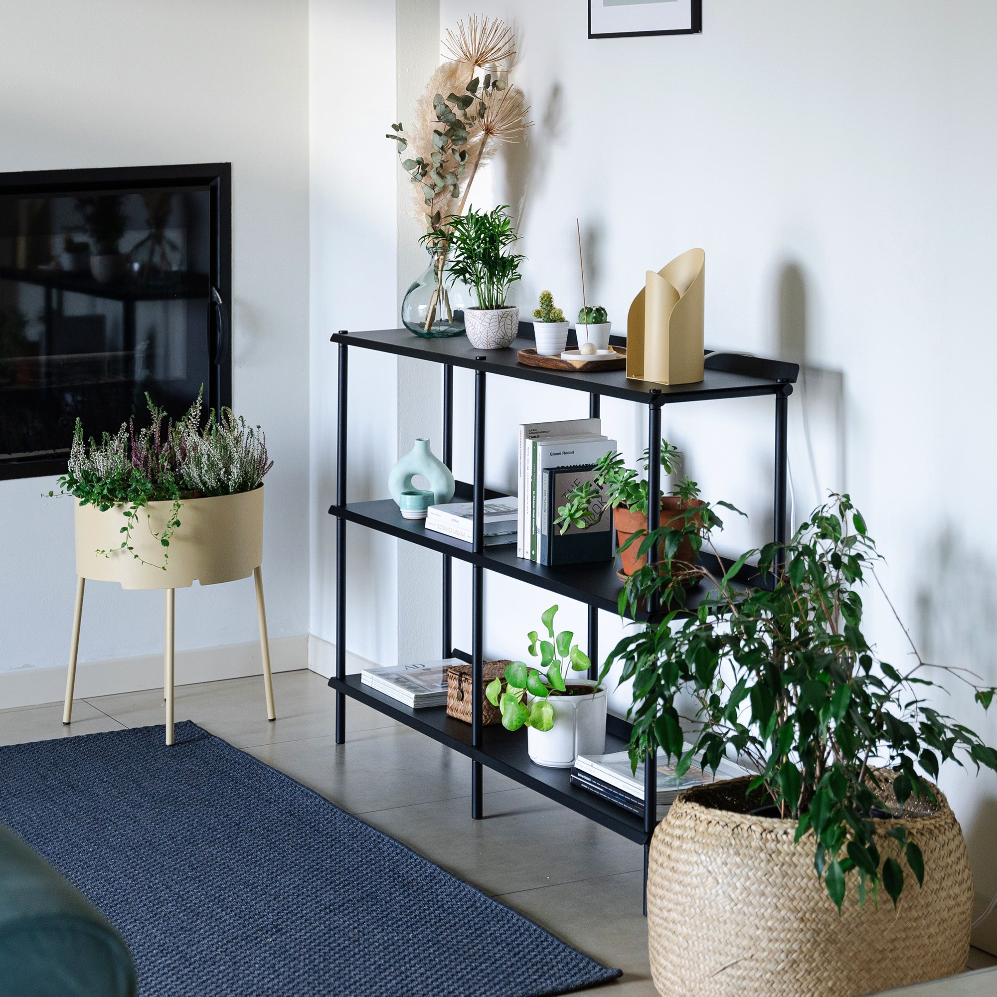 With a wooden frame and painted metal front cladding, this piece of furniture is available in four different versions: three-door sideboard, also a TV cabinet, two-door buffet, sideboard and vertical column.