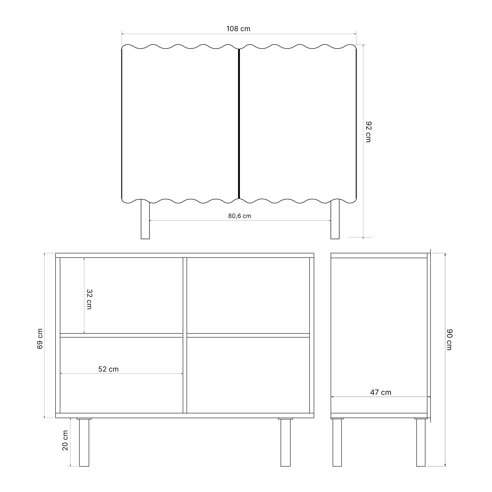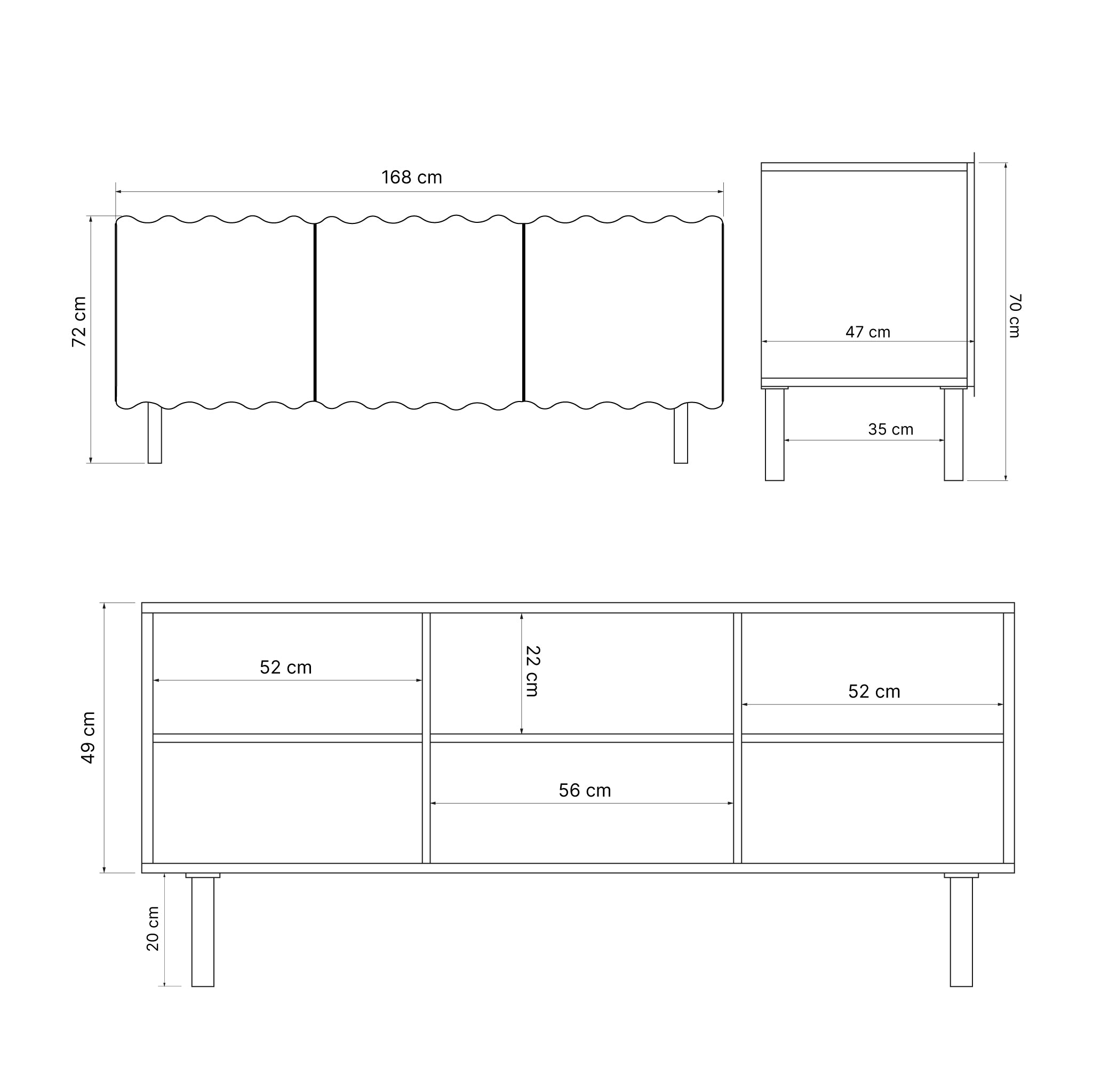 Lido is an elegant and playful sideboard that invites you to sweet melancholy, sailing on the colorful wavy profiles of its doors.