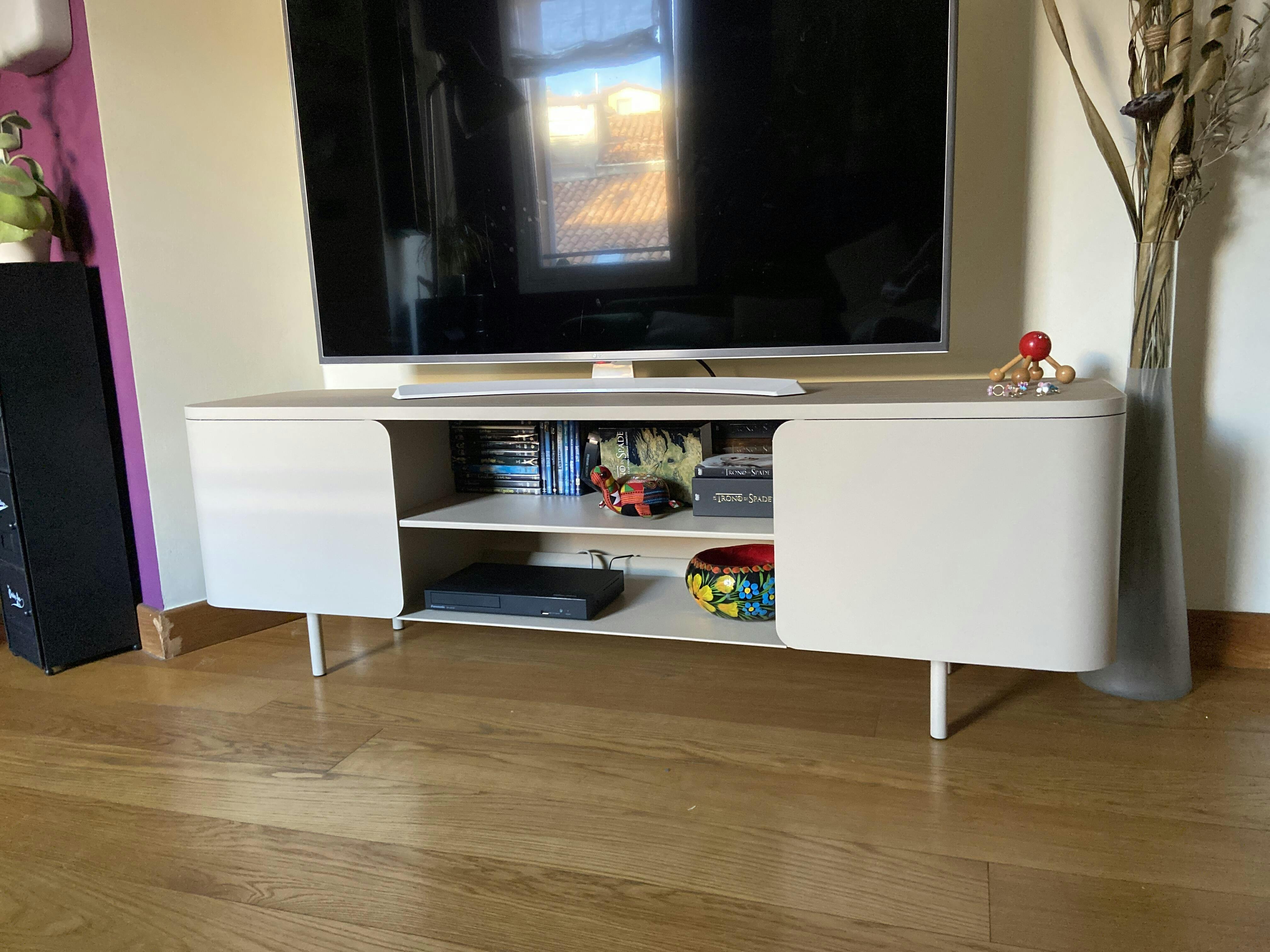 This low sideboard is designed for a modern and minimal living room, suitable as a TV stand (with internal cable management). To find the spectacle of a domestic daily routine, as in a buffet or an old country cupboard.