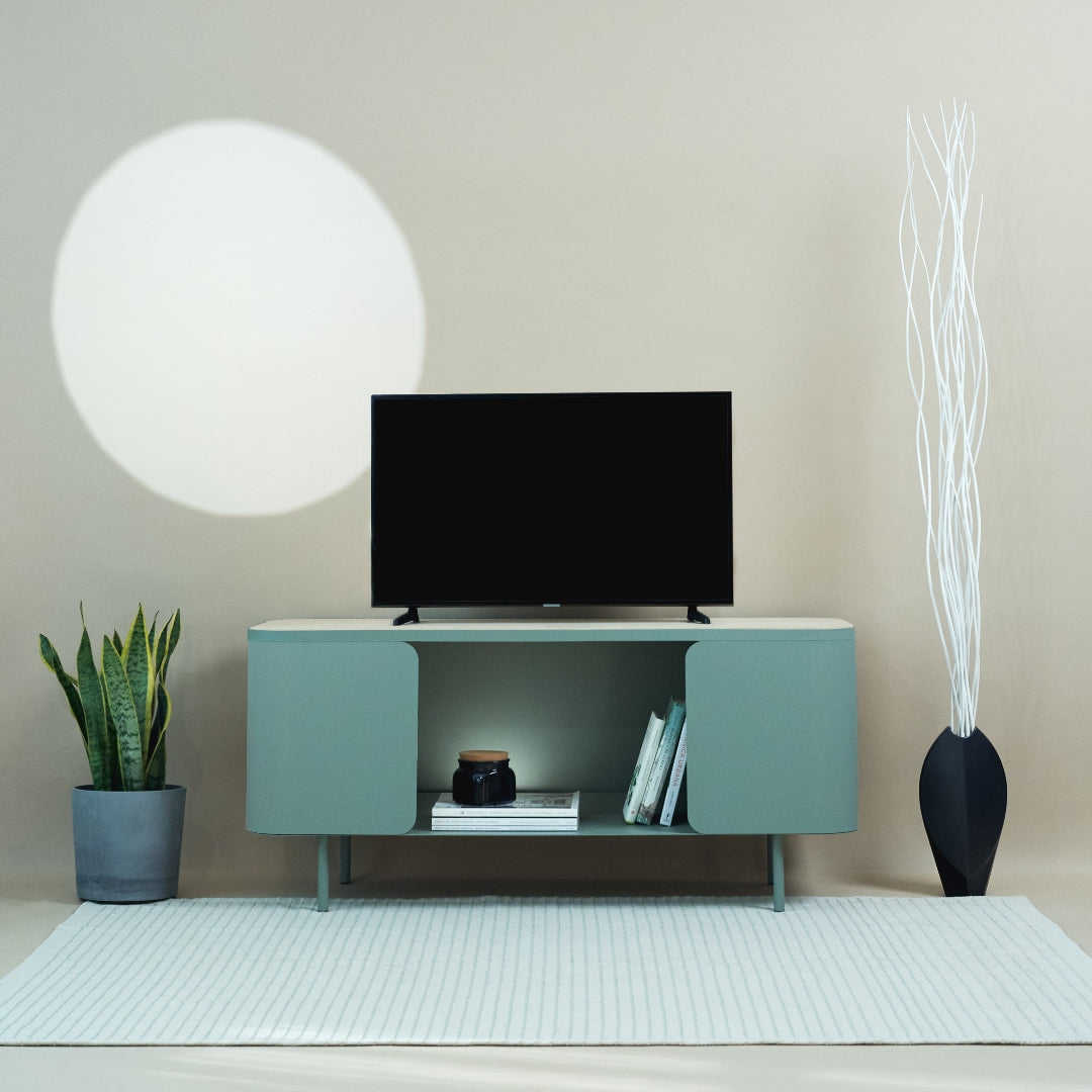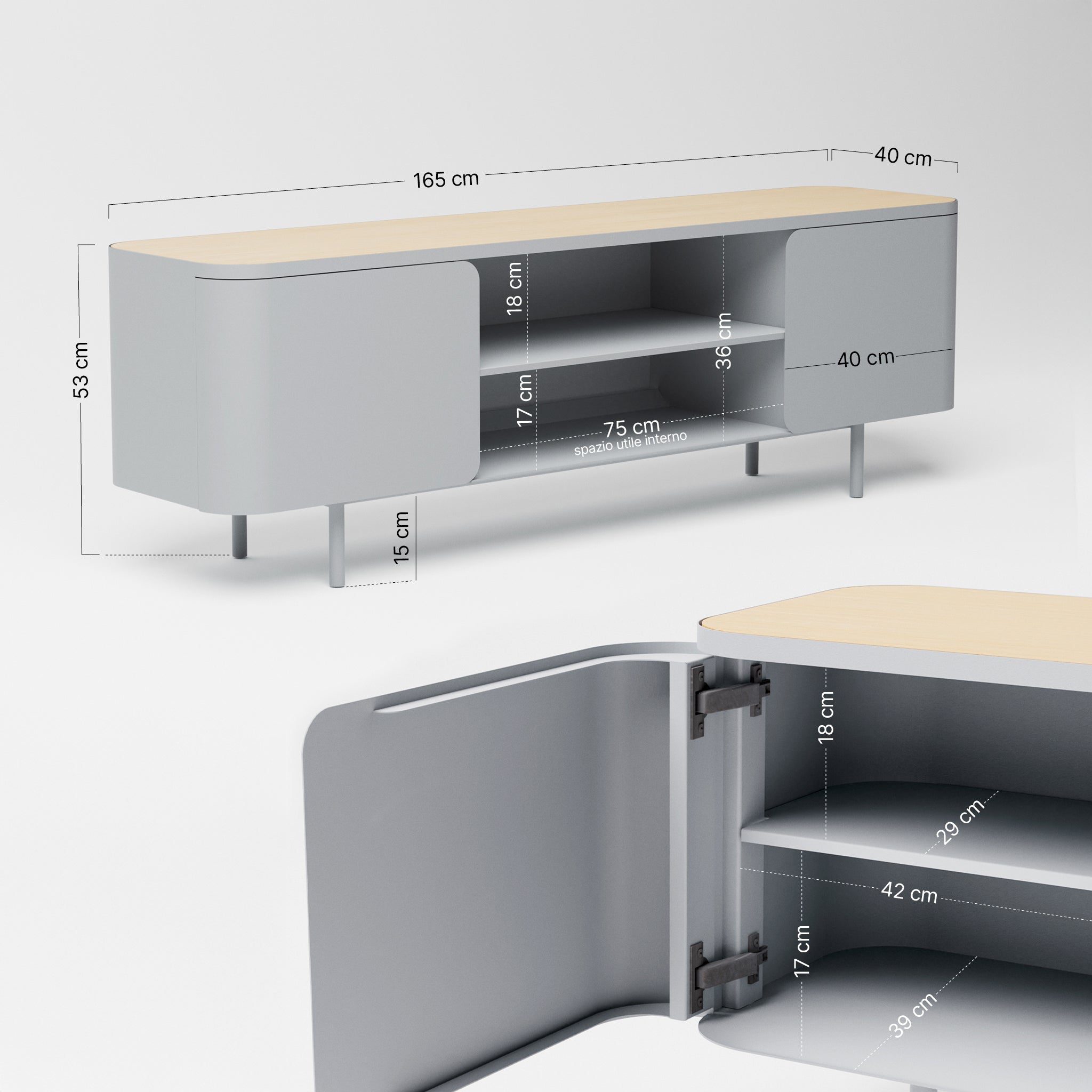 This low sideboard is designed for a modern and minimal living room, suitable as a TV unit (with internal cable management). To rediscover the spectacle of a domestic newspaper, like in a buffet or an old country sideboard.