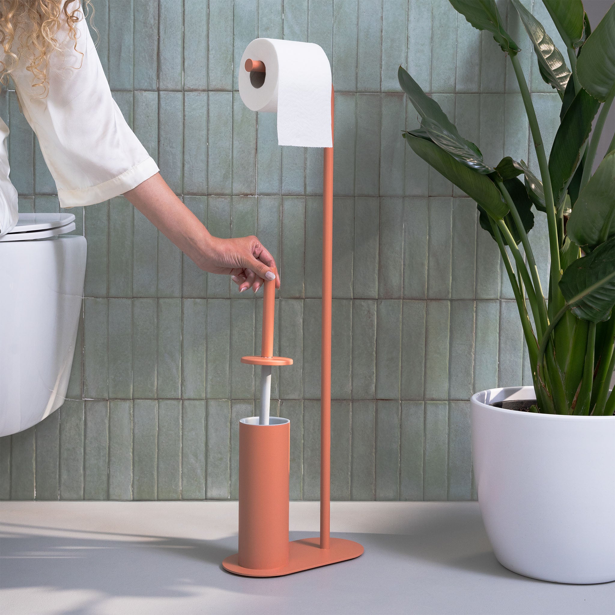 Follow a light line that rises from the ground and becomes a support for the toilet paper roll. This minimalist style floor lamp is suitable for any bathroom style. It includes an integrated toilet brush holder, with brush, convenient and functional.