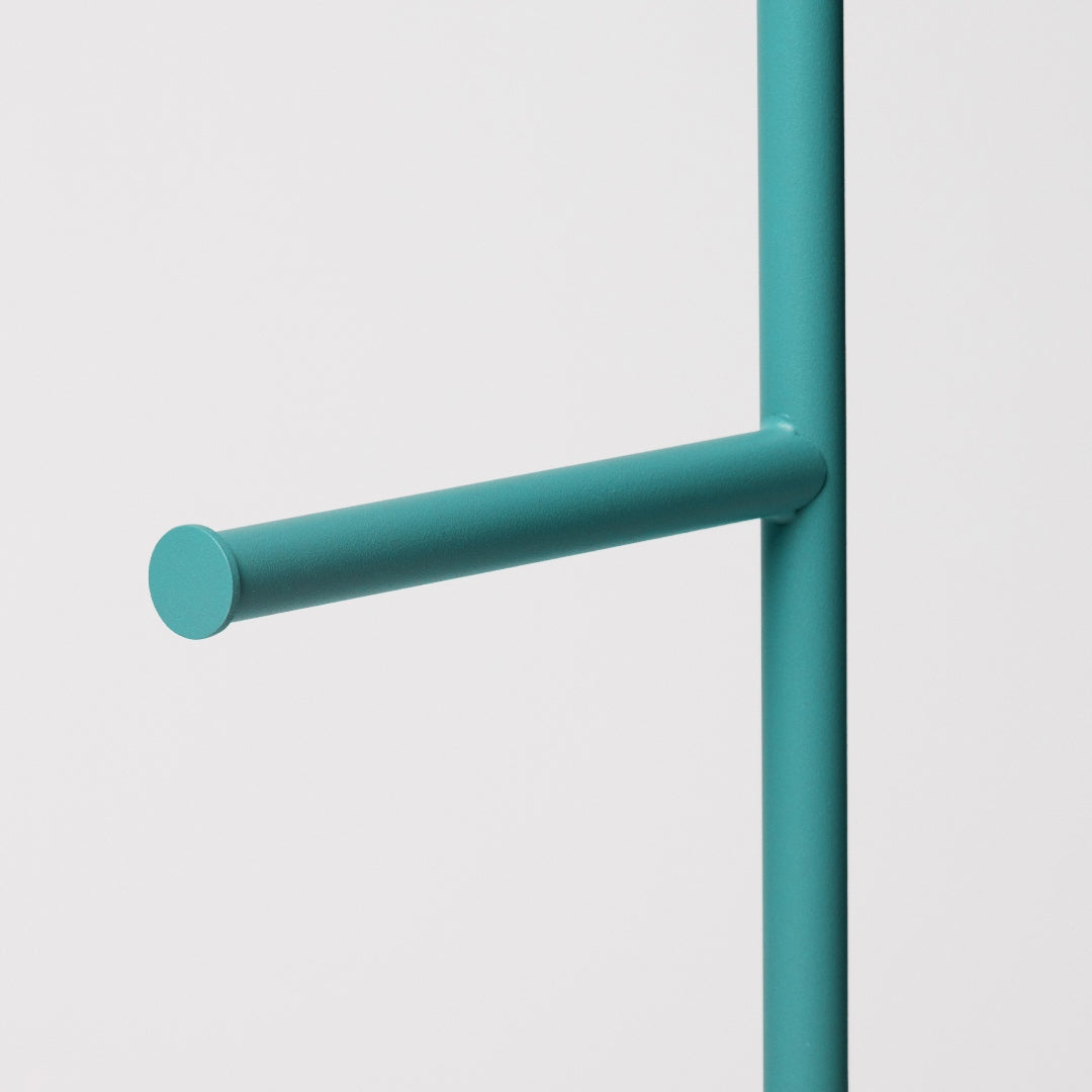 A line that germinates from the ground like a stripped branch on which to hang your towels and to support the roll of toilet paper.
