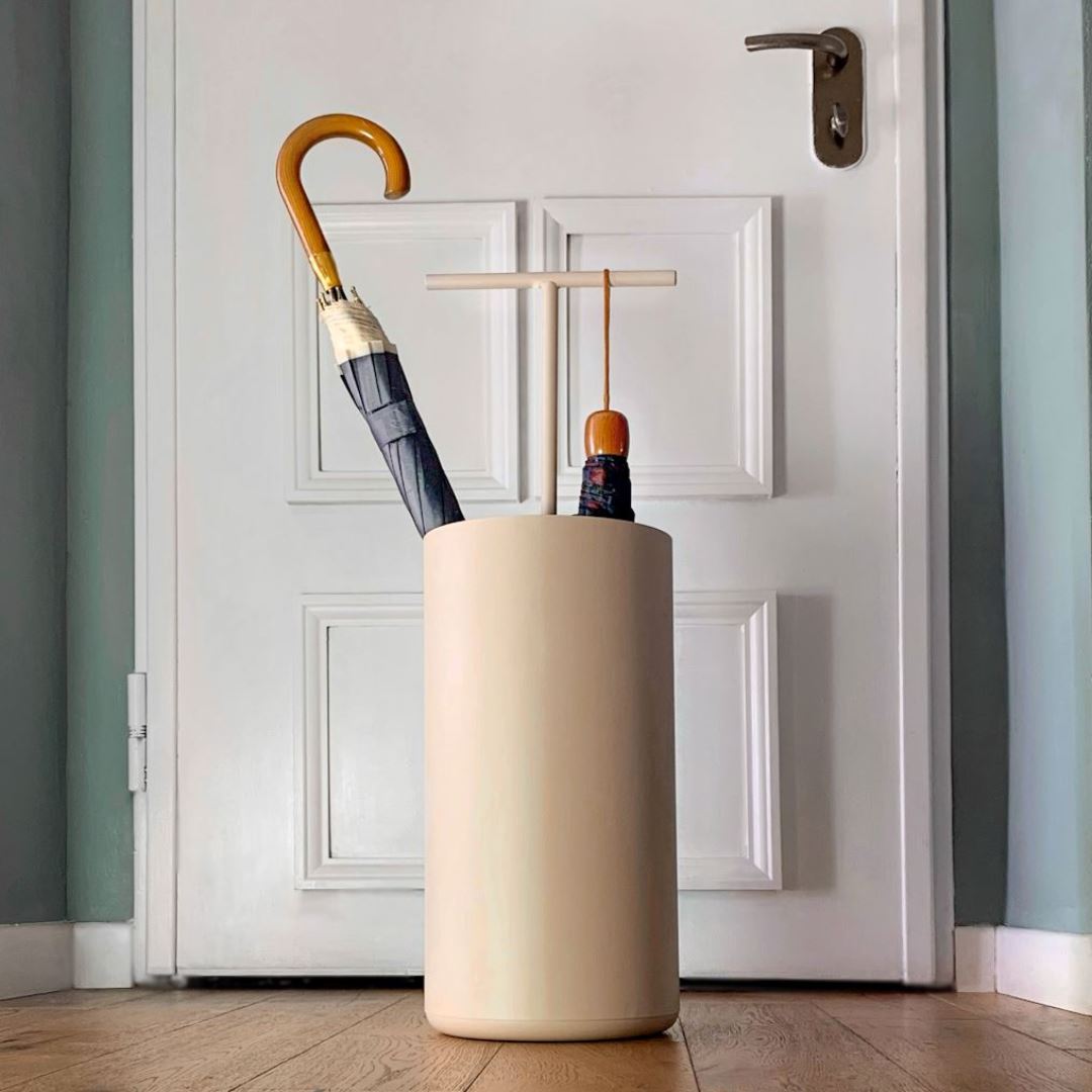 The Plu umbrella stand is equipped with a plastic tray inside to collect drips. It is advisable to shake the umbrellas well before placing them in the container and not to leave the umbrella stand exposed to rain. Emptying the plastic tray of excess water helps ensure the longevity of the object.