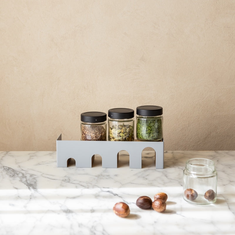 A trip along the Grand Canal. The bridge, its arches. Architecture becomes an ornament, a sculpture, in your kitchen. Spice rack and spaghetti measure, an elegant and modern object, a touch of class in your living room.