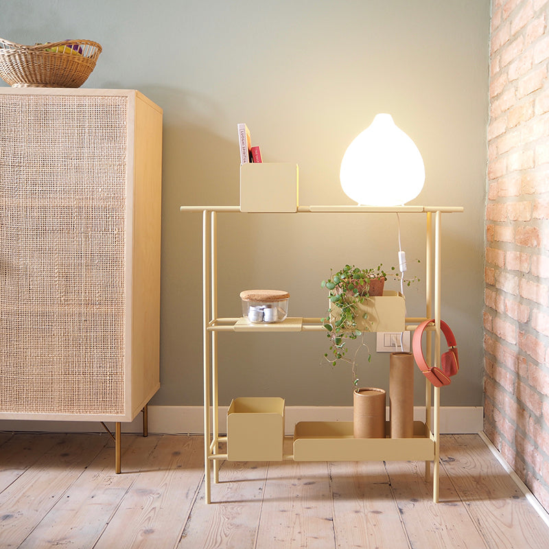 Create your ideal composition! Frida is made up of four boxes and two completely removable and rearrangeable shelves to build the piece of furniture that best suits your needs. Ideal in the entrance as in the kitchen and in the bathroom. Use the spaces as practical pocket emptiers, for your seedlings, to collect bottles or condiments, change every day if you want. Design is your choice, Frida is your furnishing opportunity.
