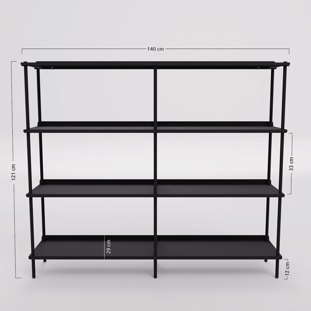 We recommend a maximum total load of 30 kg for the narrow version and 45 kg for the wide version. We recommend a maximum load of 10 kg for each narrow version shelf (70 cm) and 15 kg for each wide version shelf (140 cm), always equally distributed.