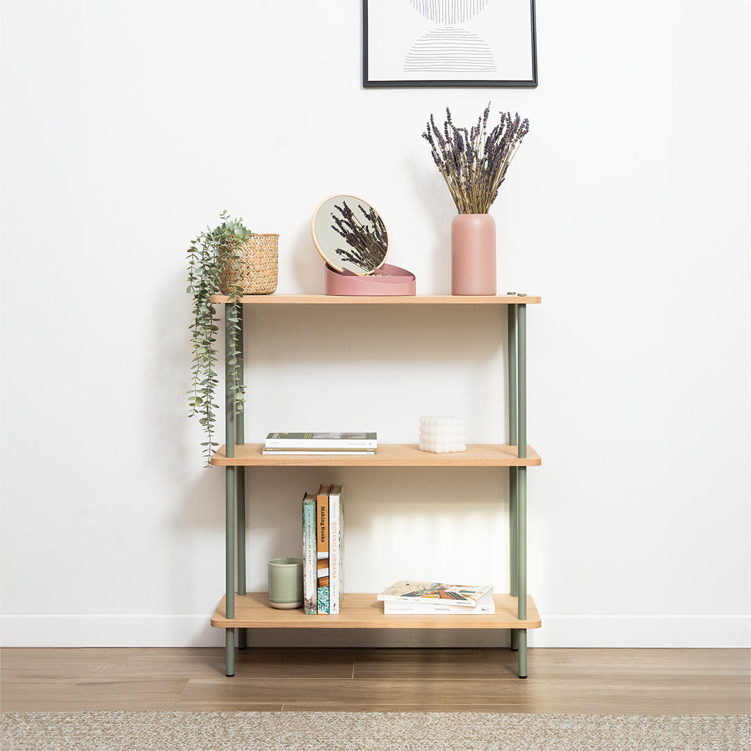 A modern and minimal colonnade supports the light profiles of the wooden shelves. Your little kingdom to fill with books and souvenirs. From the narrow three-shelf version, suitable for every corner of the house, to the wide six-shelf version that decorates your living room.