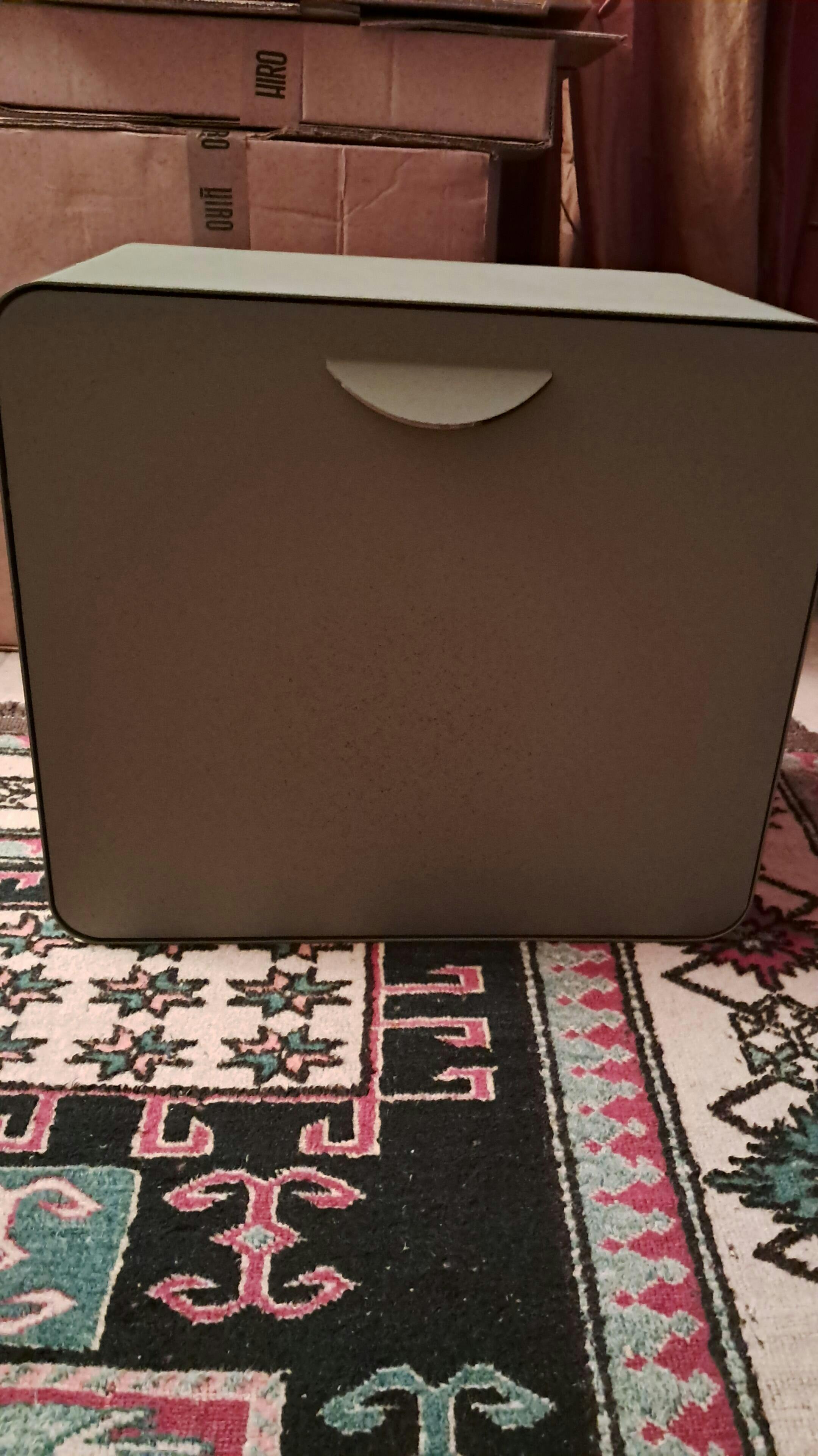 The shoe rack has a height of 41.5 cm, a depth of 29 cm, and a width of 46.5 cm. With the door open the maximum depth is 62 cm.
