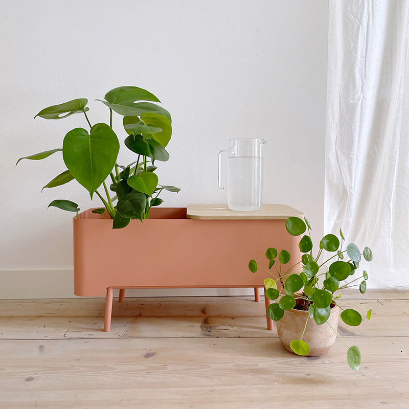 The planter box is removable from its base. You can complete your Altea with an oak finish wooden tray, suitable for placing other vases and playing with the different levels or using it as a shelf for ornaments.
