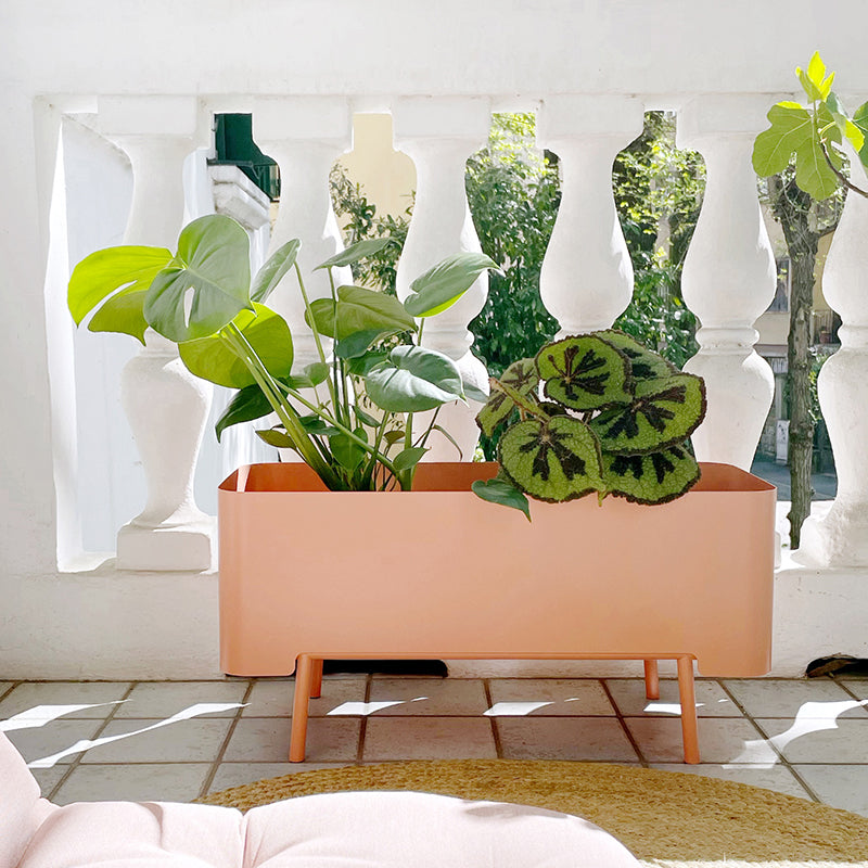 Freestand plant stand in painted steel and treated for outdoor use (low version). Our domestic plants grow thanks to the care we give them every day. Giving them a container that enhances them and makes them even more protagonists, of our house or our garden, is only the last stage of this commitment. Altea is truly “the one who takes care of" and, from today, the piece of design that will take care of the beauty of your flowers. In this version with a low support, the planter becomes a discreet and elegant piece of furniture, indoors and outdoors. With the recycled wood tray, faced with natural oak, it finds a new style and also becomes a shelf and a coffee table, to place your favorite ornaments or other vases and play with the different levels.More details