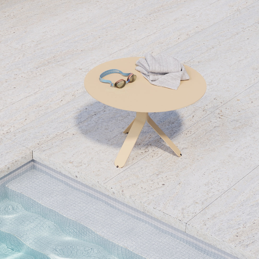 The round tables are available in two versions: coffee table (low) with a top diameter of 60 cm and a height of 40 cm; side table (high) with a top diameter of 38 cm and a height of 45 cm. The maximum width of the support base is 35 cm.