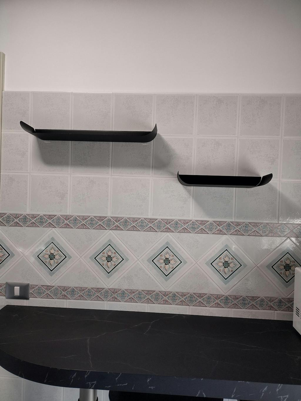La mensola va applicata a parete tramite due tasselli che vengono forniti nella confezione.
