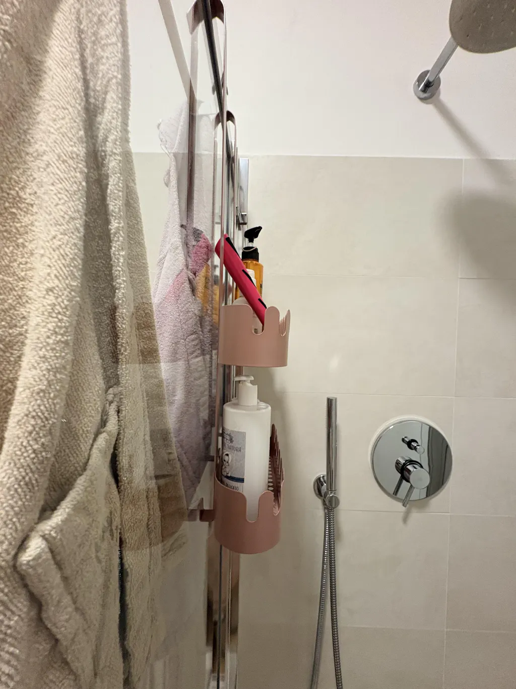 Il portaoggetti Marinella da box doccia non necessita di montaggio, va semplicemente appeso al profilo del box doccia tramite i ganci superiori. Le versioni da parete, angolare e piana, vanno fissate tramiti due viti con tassello.