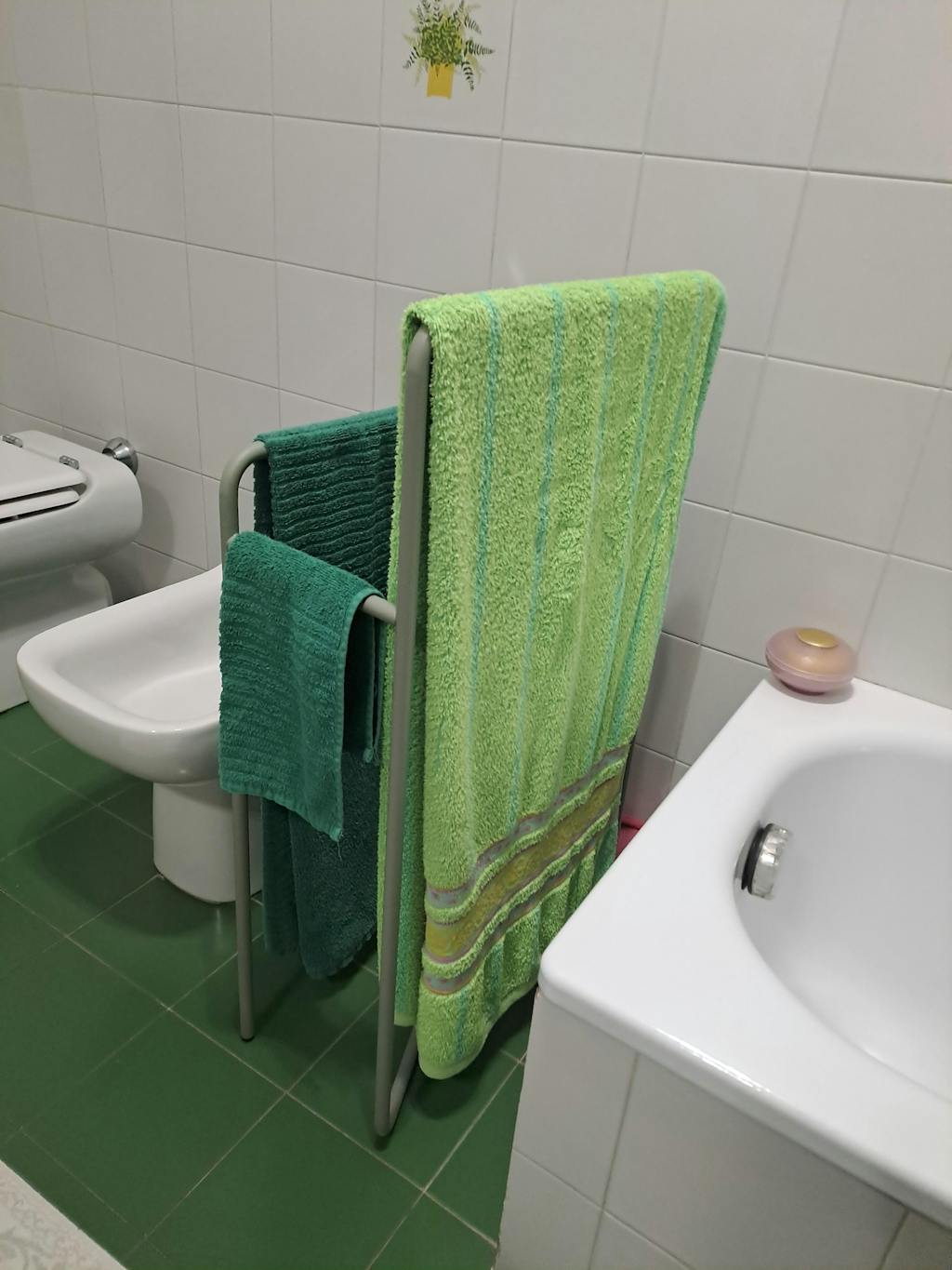 L'oggetto è pensato per raccogliere asciugamani da appoggiare lungo il tubolare negli spazi orizzontali.