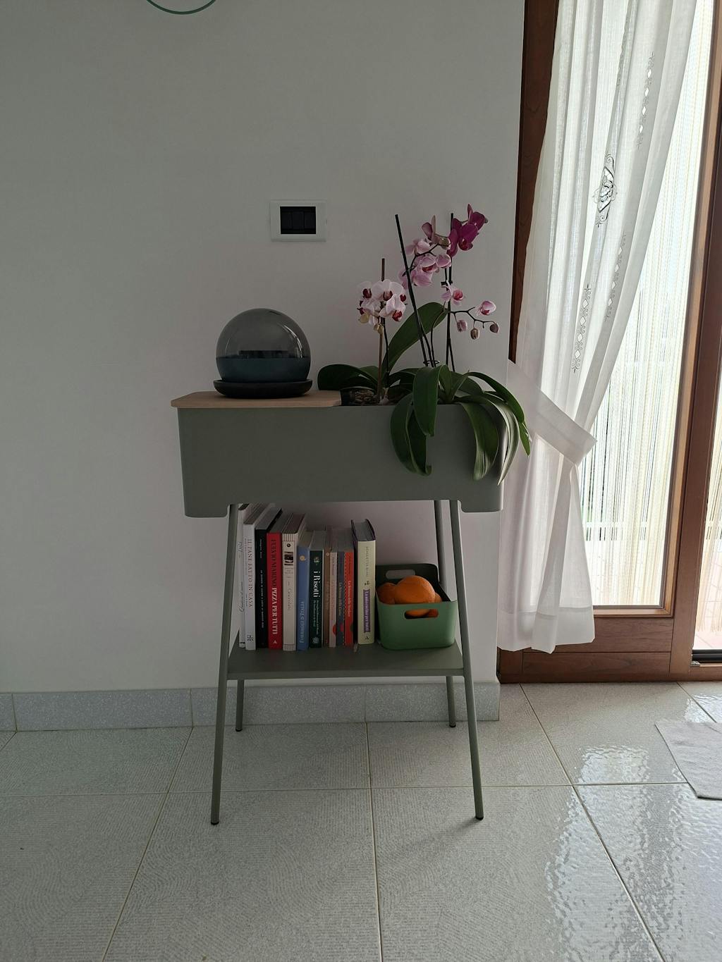 En esta versión con soporte alto, el macetero se convierte en el verdadero protagonista, tanto en interiores como en exteriores. Práctico y versátil también gracias al estante central.