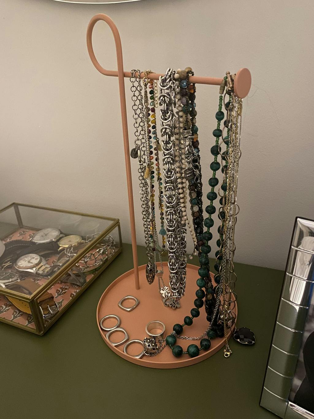 Ambra è la resina profumata degli alberi che diventa pietra, usata da sempre per creare gioielli, si dice da più di 20 mila anni! Un omaggio ai preziosi che esporrà sul tuo angolino trucco. Un portagioie minimale, dalle forme semplici ed eleganti. Perfetto per appendere collane e braccialetti, la base è un piattino che raccoglie i piccoli bijoux, anelli e orecchini.