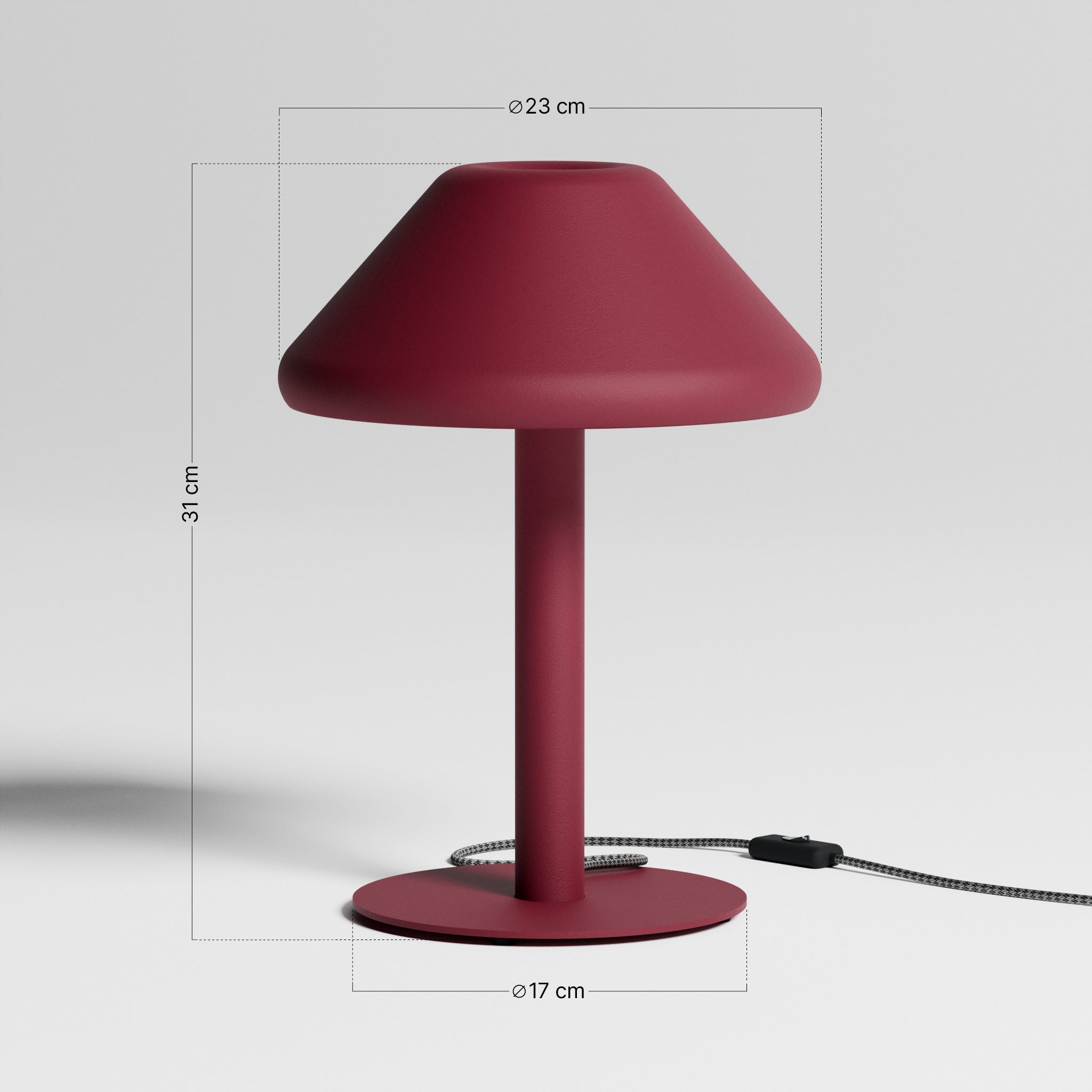 Il diametro del paralume è di 23 cm, il diametro alla base 17 cm. L'altezza totale è 31 cm, dalla base al paralume è di 21 cm. La lunghezza del cavo è 160 cm, la distanza lampada-interruttore 35 cm, tra interruttore-presa 120 cm. Peso 1,5 kg.