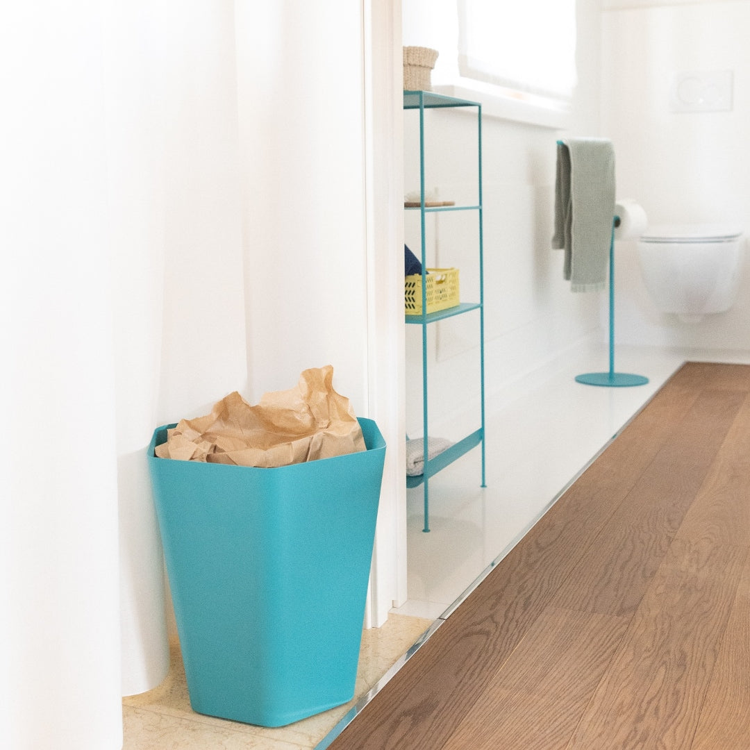 Il cestino Exa è pensato per essere utilizzato vicino alla tua scrivania o in cucina (versione grande) ma anche in bagno (consigliata la versione piccola).