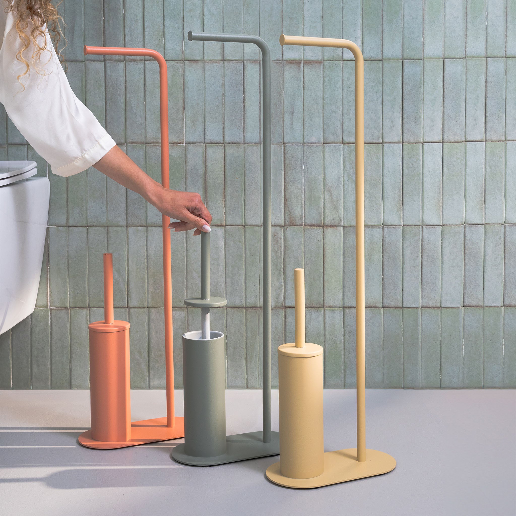 Segui una linea leggera che sale da terra e si fa supporto per il rotolo di carta igienica. Questa piantana dallo stile minimalista è adatta ad ogni stile di bagno. Comprende un porta scopino integrato, con spazzola, comodo e funzionale.