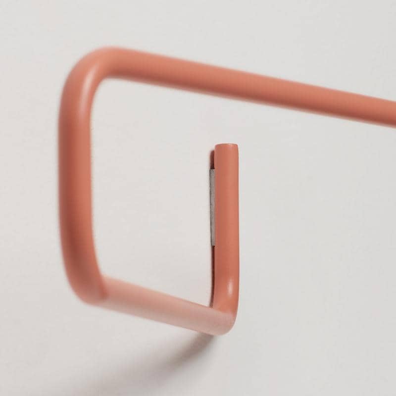 L'oggetto è pensato per raccogliere asciugamani da appoggiare lungo il tubolare negli spazi orizzontali.