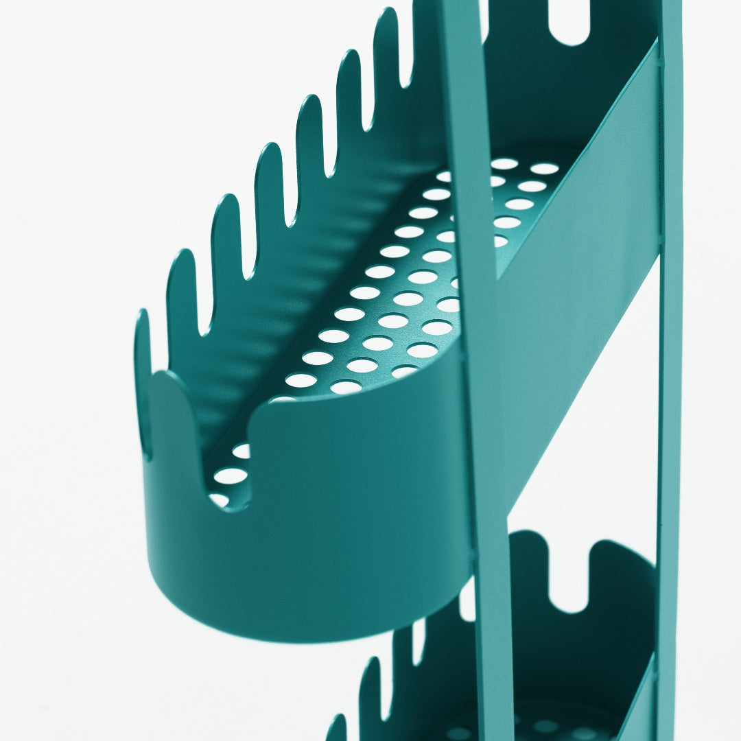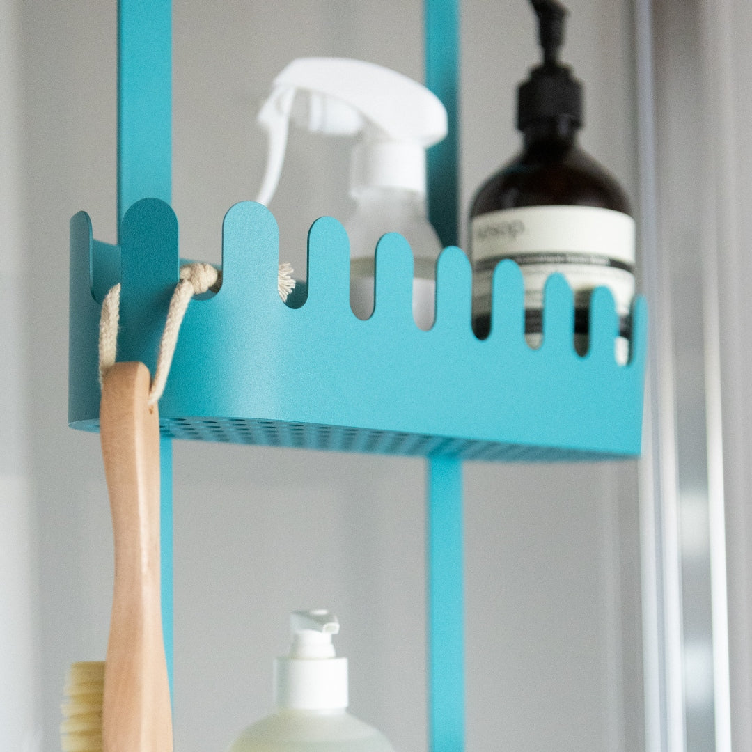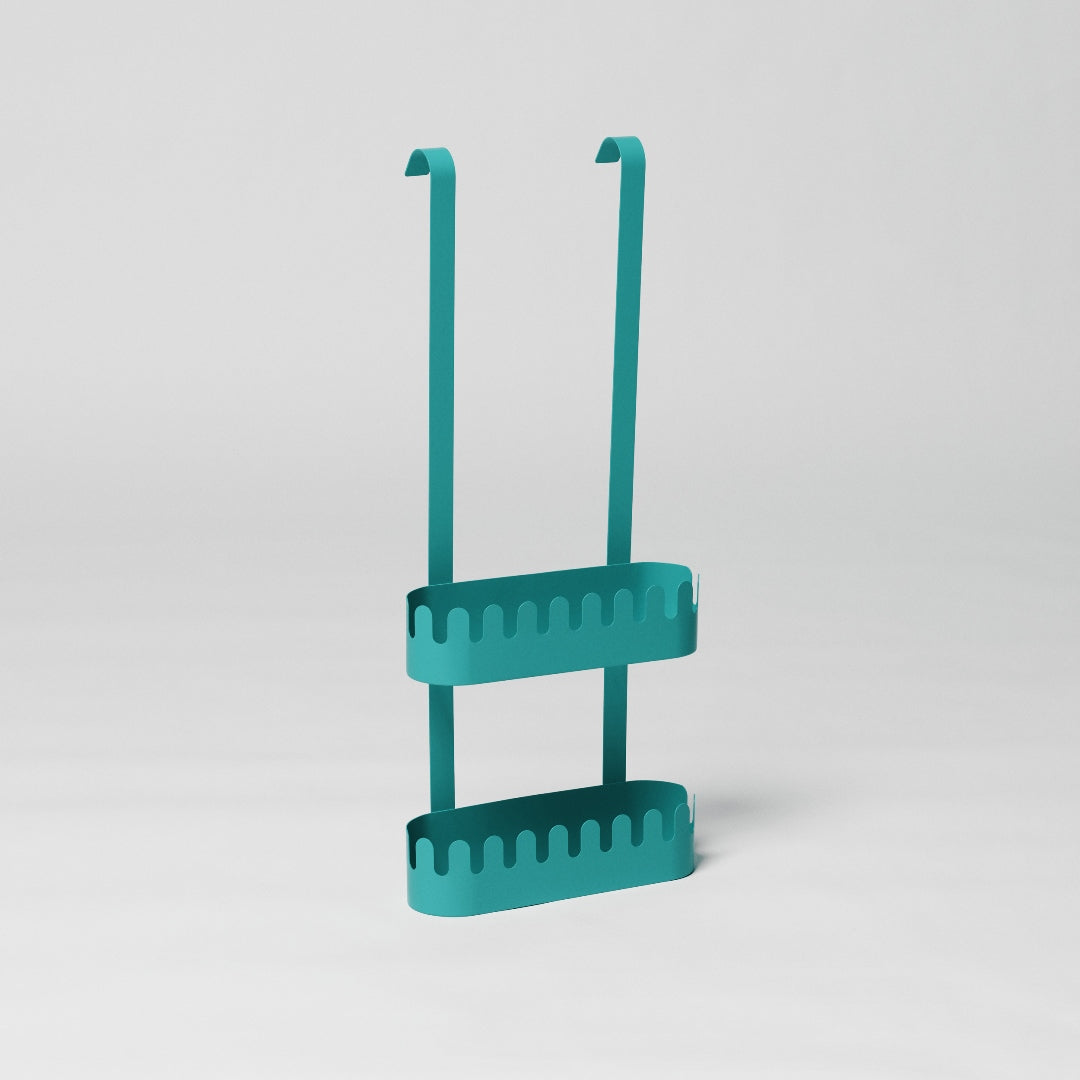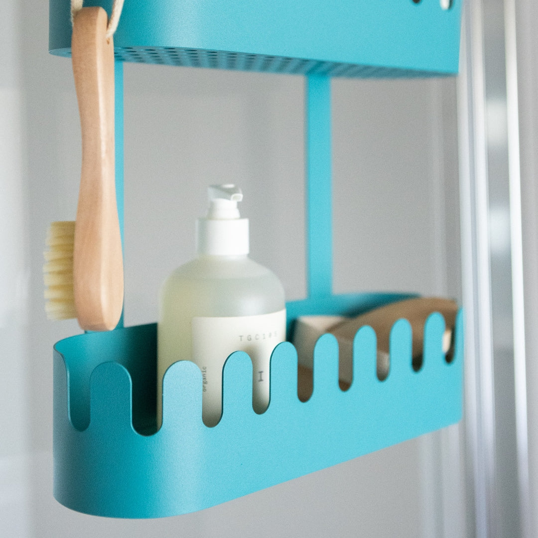 Formato da due vani portaoggetti, forati per evitare ristagni d’acqua. Decorati con un motivo ad onde che diventano pratici supporti per appendere spugne, lacci e tutto quello che ti serve.