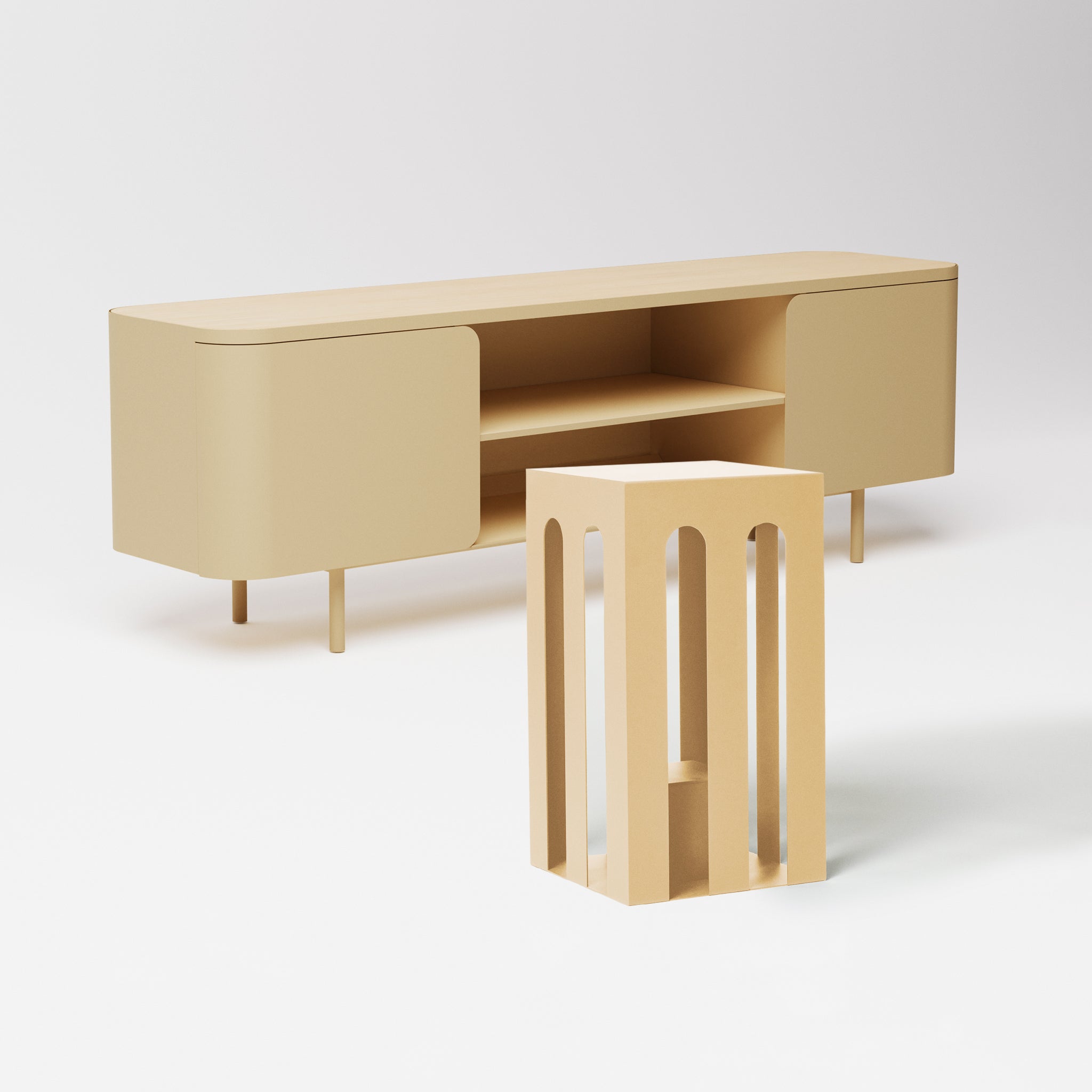 L'architettura italiana rinascimentale e antica, nel tuo salotto. Uno scorcio moderno e minimale. Una struttura che cela al suo interno un secondo elemento: il pieno nel caso del side table, luogo di arrivo e di rifugio, e il vuoto nel caso del coffee table, luogo di incontro (vedi anche il coffee table Donatello). Entrambi sono visibili attraverso le arcate, suscitando la curiosità di chi osserva. Pensato per essere disposto a fianco del divano ma anche in un angolo, in ogni parte della casa.