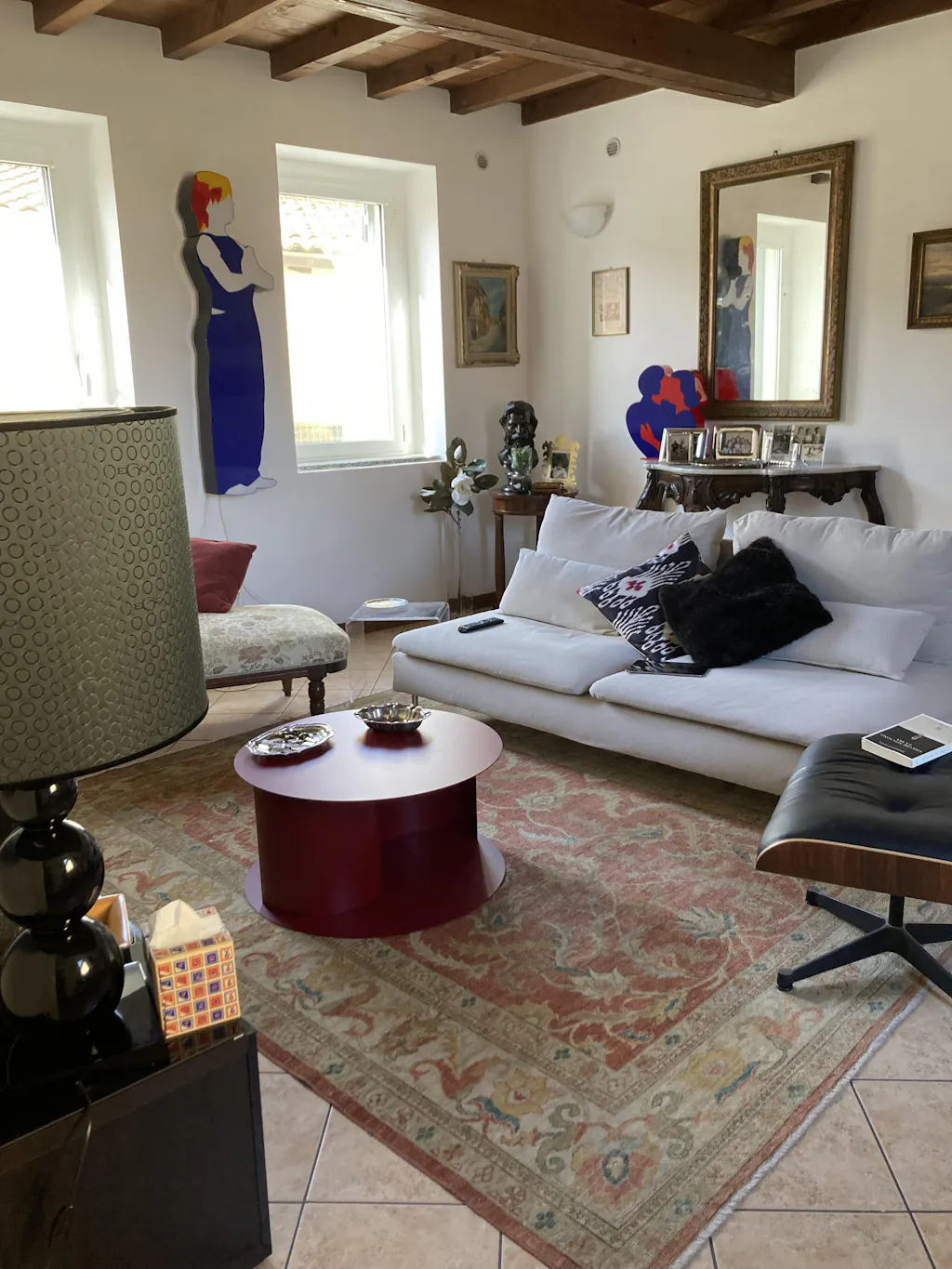 Una superficie ondulata intrappolata tra due cerchi, da forma a questo tavolino. La lamiera curvata, che diventa struttura, divide ciascun cerchio in due parti, come a ricreare lo “Yin” e lo “Yang”. I giochi di luce sulle finiture del metallo si combinano con i contrasti delle forme, per dar vita a un volume scultoreo e seducente.
